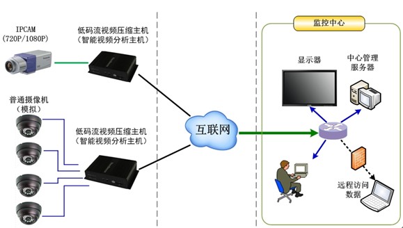 隨著監控技術的快速發展,高清視頻監控已經逐步成為了主流的應用方向,D1(704*576像素),720P,1080P等分辨率的監控系統,隨著設備成本的下降,已經被許多用戶接受并使用,高清晰的視頻畫面能讓用戶對畫面中的細節看得更清楚,同時還能的獲得更大視角范圍。但是高清視頻監控系統隨之也產生了另一個問題——雖然高清的視頻監控系統均采用了H.264的編碼方式,但還是產生了較大的視頻碼流,由此對于視頻傳輸所需的帶寬要求非常高,這使得網絡傳輸的建設成本大幅增加,同時也使得高清視頻監控系統的適用范圍受到了限制。