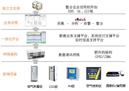 eWatch環(huán)境在線監(jiān)控監(jiān)測應用平臺實現(xiàn)監(jiān)控和生產(chǎn)相結合的綜合性應用平臺。平臺由數(shù)據(jù)中心、一體化應用平臺、綜合監(jiān)控基礎平臺、業(yè)務應用系統(tǒng)和接口服務模塊等組成,在綜合監(jiān)控基礎平臺上開發(fā)圖像監(jiān)控系統(tǒng)、環(huán)境動力監(jiān)控系統(tǒng)和數(shù)采系統(tǒng)等多個業(yè)務應用系統(tǒng);系統(tǒng)可以實現(xiàn)污染源在線監(jiān)測監(jiān)控、鋼廠區(qū)域視頻監(jiān)控、煙塵林格曼黑度分析、環(huán)境動力監(jiān)控、語音對講、周界安防監(jiān)控、智能設備監(jiān)測等多個應用。