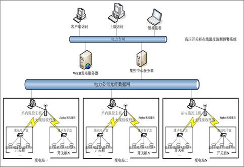 公司結(jié)合電力行業(yè)的實(shí)際應(yīng)用需要和多年的電力行業(yè)實(shí)時(shí)在線監(jiān)測(cè)監(jiān)控經(jīng)驗(yàn),采用無(wú)線傳輸ZigBee技術(shù)和高精度數(shù)字式紅外測(cè)溫傳感器技術(shù),研制出適合變電站高壓開(kāi)關(guān)柜應(yīng)用的實(shí)時(shí)在線溫度監(jiān)測(cè)智能診斷預(yù)警系統(tǒng)。該系統(tǒng)既可獨(dú)立應(yīng)用在一個(gè)變電站內(nèi)通過(guò)計(jì)算機(jī)軟件實(shí)現(xiàn)溫度實(shí)時(shí)在線分析又可通過(guò)網(wǎng)絡(luò)把實(shí)時(shí)數(shù)據(jù)傳送各級(jí)集控中心組建市、縣級(jí)的大型監(jiān)測(cè)監(jiān)控系統(tǒng),為有效監(jiān)測(cè)高壓開(kāi)關(guān)柜安全運(yùn)行和變電站的智能化管理提供了非常有效的工具。