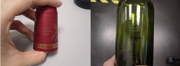 葡萄酒行業由于產品自身的特點,一方面生產速度快,另一方面,產品入箱順序難以保證,針對該行業的特點,易溯科技開發出一套專門針對葡萄酒行業的防竄貨管理解決方案。  可以在酒瓶的瓶身上或者瓶徑處利用激光機標刻防竄貨產品ID,如下圖所示。