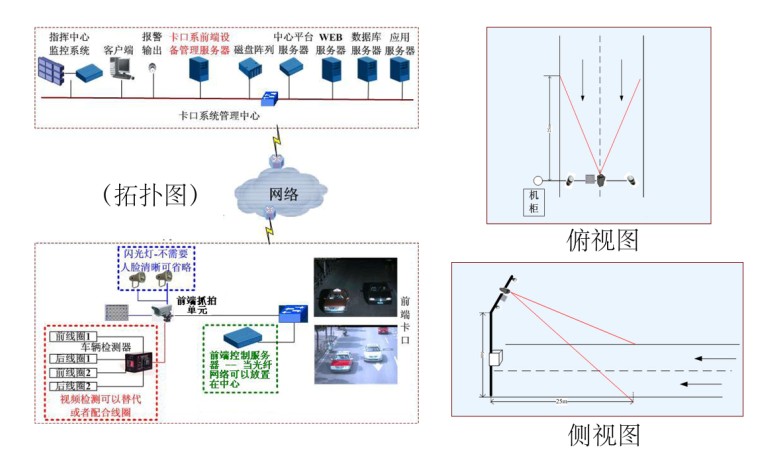 我公司智能高清卡口系統(tǒng)分為:前端視頻檢測和識別系統(tǒng)、傳輸系統(tǒng)和中心處理(后端)系統(tǒng)三部分。